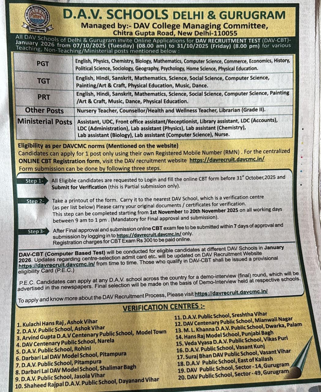 Details of DAV Recruitment Test (DAV-CBT) Jan-2026